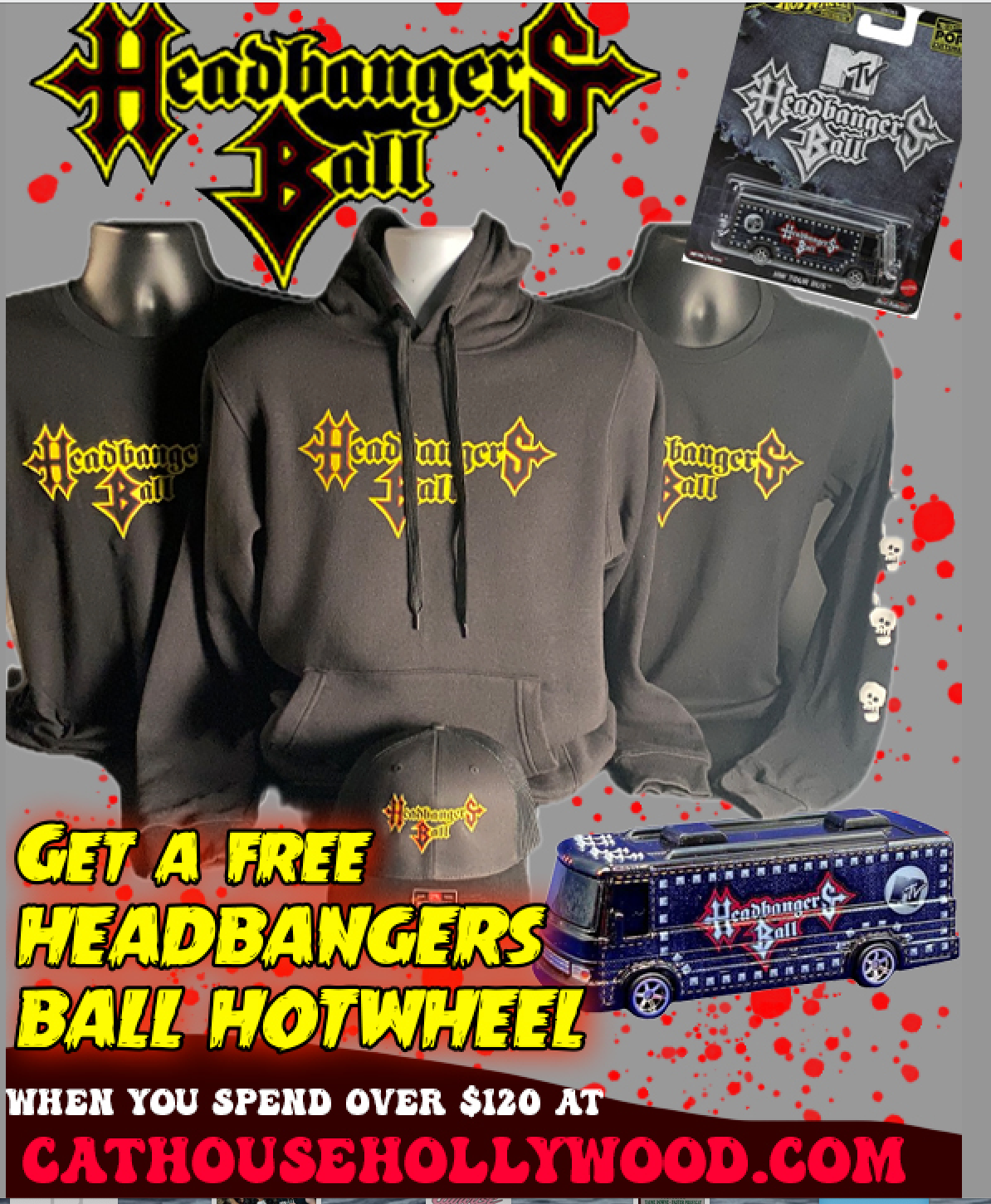 Spend over $120 today on Headbangers Ball, Cathouse Hollywood, Cathouse Coffee or OFITG merch and get a free Headbangers Ball Hotwheel