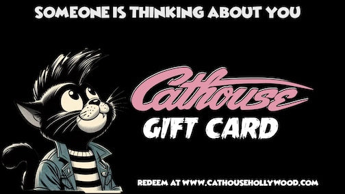 No stress, no worry. You forgot to give that special someone a gift. It can't be any gift right? How about a gift card to Cathouse Hollywood. It takes seconds. They could buy the new Motorhead/ Cathouse shirt. Perhaps a Headbangers Ball hoody or even some Cathouse coffee. It's entirely up to them. They redeem it at www.cathousehollywood.com. C'mon now a gift from a true small business in America. We are rock n roll. We are the ones that gave you the famed club Cathouse. We are the company owned by the former host of Headbangers Ball. Cmon we are the coolest gift you could give and you don't have to go anywhere