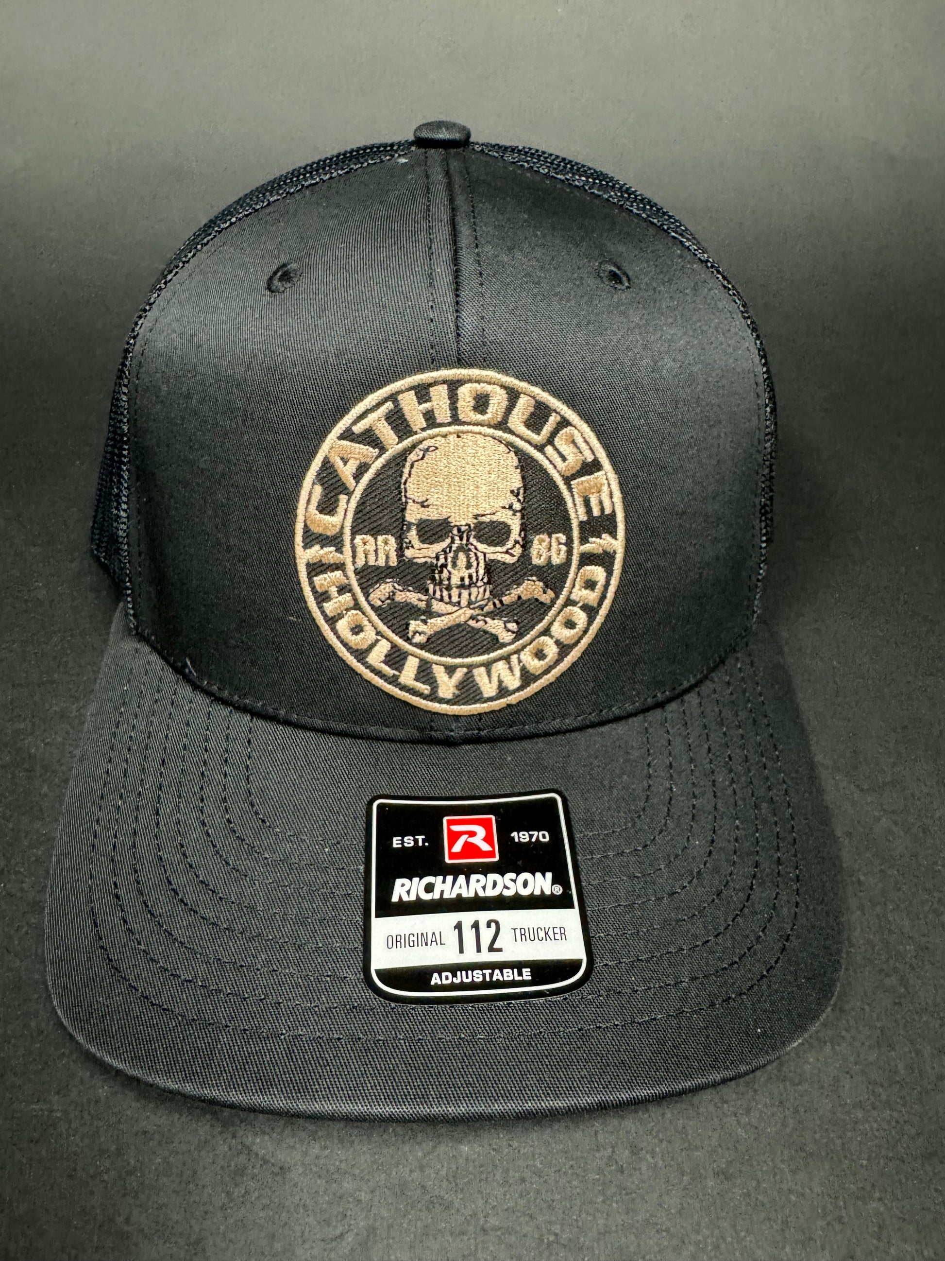 The all new Cathouse Hat. All embroidered patch in bronze/gold on the Richardson 112 Trucker hat