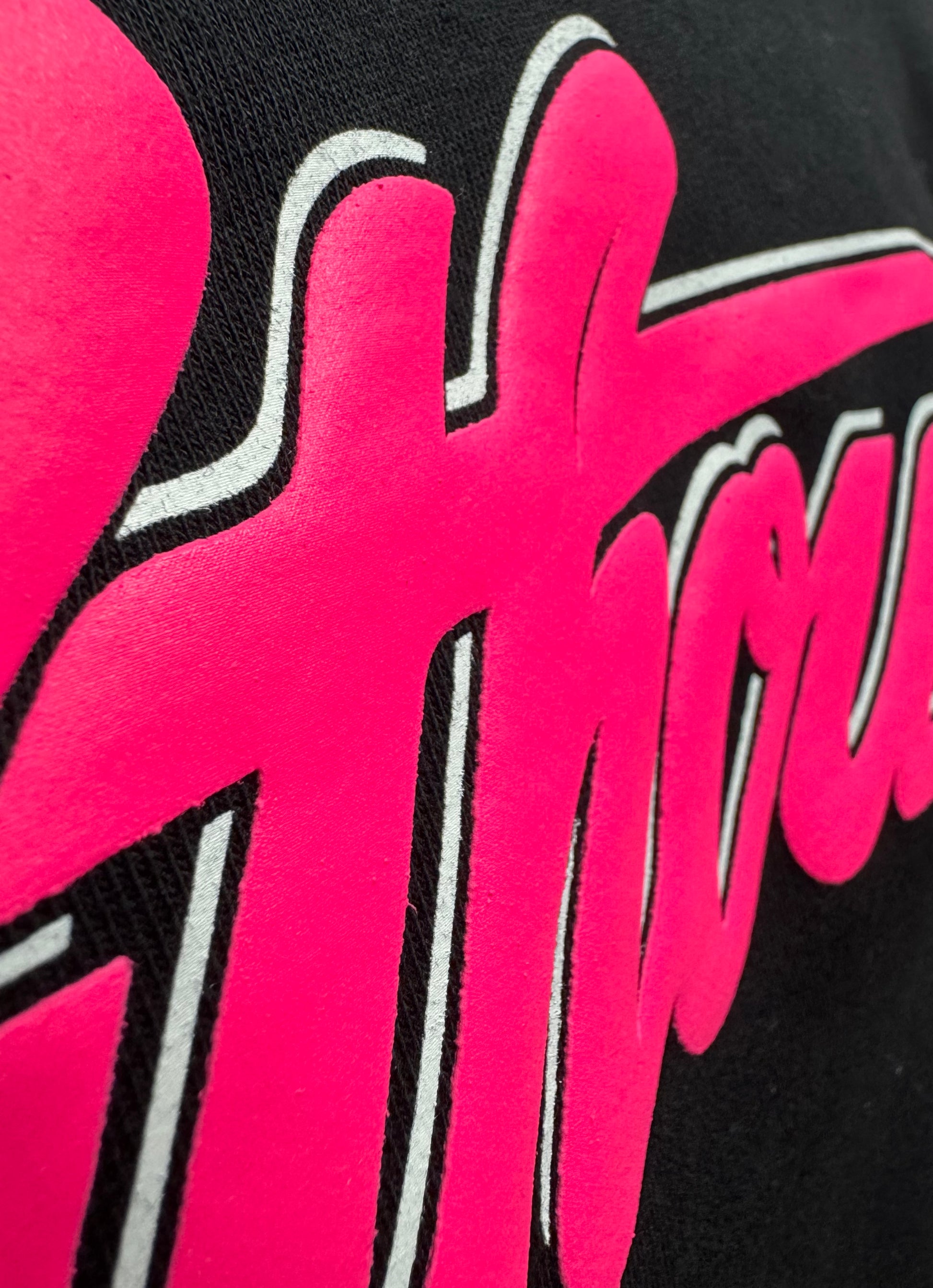 Our VIP cut puff-pink women's sweatshirt with a thick waistband and a thick cuff. Nice and warm, comfy and stylish.